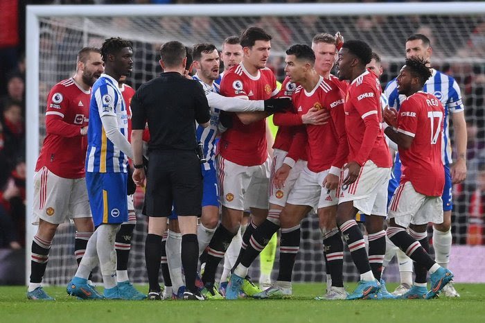 Nyuma yo kuvuna Elanga, Lewis Dunk yabanje kwerekwa ikarita y’umuhondo n’umusifuzi Peter Bankes. Ibyo byatumye abakinnyi ba United basagarira umusifuzi kubera icyemezo yari amaze gufata.