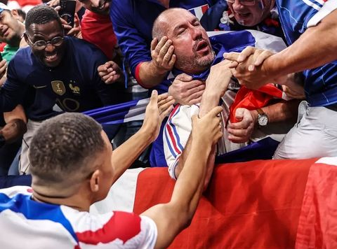 Mu mukino wahuzaga ikipe y’igihugu ya Morocco nk’ikipe ya France umukinnyi Mbappe ubwo yarari gukina yaje gutera ishoti riremereye riragenda rifata umufana.