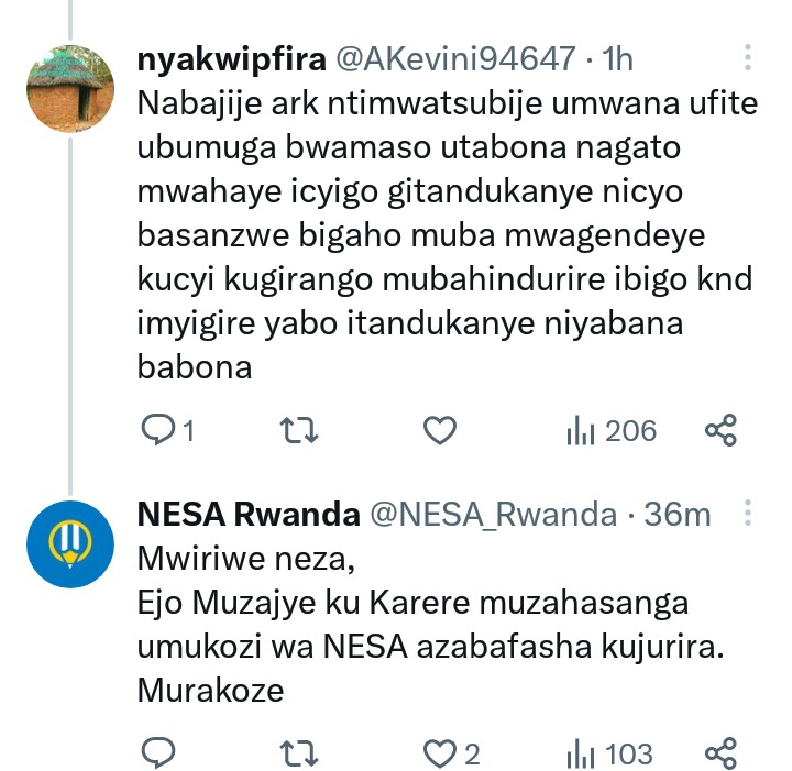 Abo muri NESA bamusubije bati” Mwiriwe neza, Ejo Muzajye ku Karere muzahasanga umukozi wa NESA azabafasha kujurira.