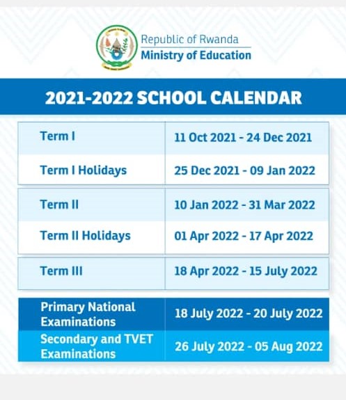 Minisiteri y’Uburezi yishimiye gutangaza Ingengabihe y’Amashuri Abanza, Ayisumbuye n’ ay’ Imyuga n’Ubumenyingiro y’Umwaka w’Amashuri 2021/2022.