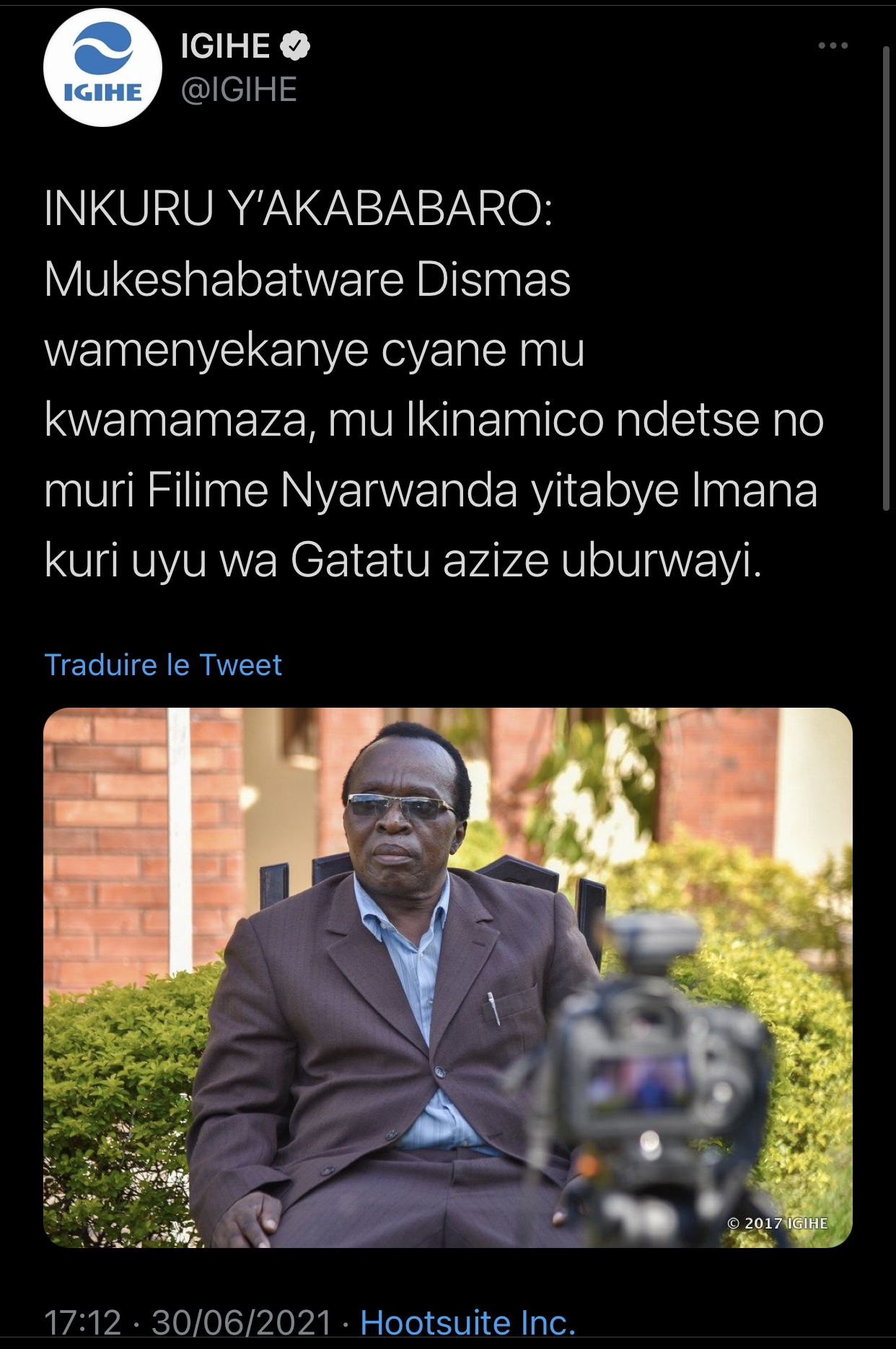 Inkuru y’incamugongo itugezeho nonaha ni iy’uko Mukeshabatware Dismas wamenyekanye cyane mu kwamamaza, mu Ikinamico ndetse no muri Filime Nyarwanda yitabye Imana.