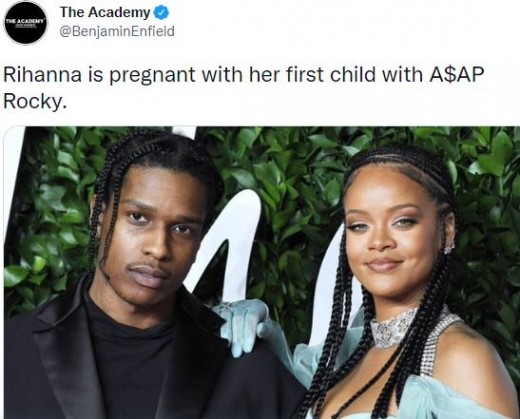 Amakuru akomeje gucaracara ku mbuga nkoranyambaga ko Rihanna atwite, abantu bamwe bari kubihamya abandi bakabihakana. Ibi bikaba byazamuwe na THE ACADEMY banditse bwa mbere bagira bati: ”Rihanna atwite imfura ye na A$AP Rocky.”