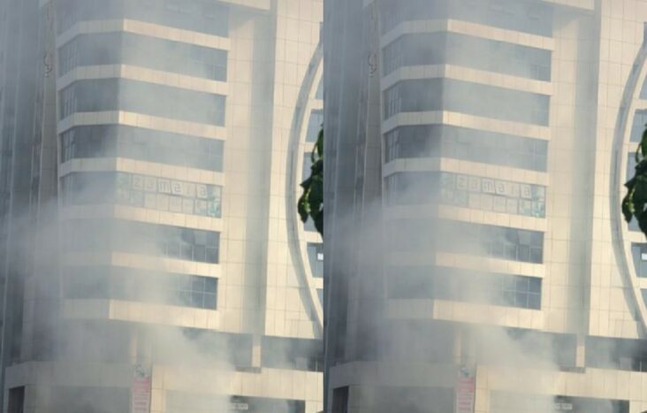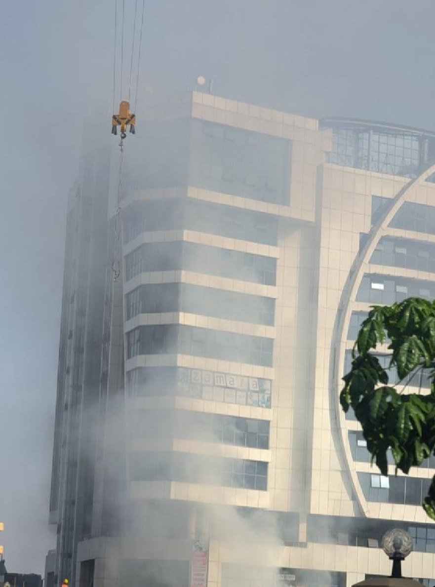 Iyi nyubako yafashwe n’inkongi y’umuriro ku igorofa ryohasi kuburyo imyotsi yahise izamuka hejuru gusa kugeza ubu ntabwo haramenyekana icyateye iyo nkongi.