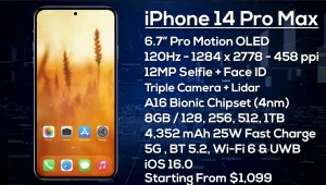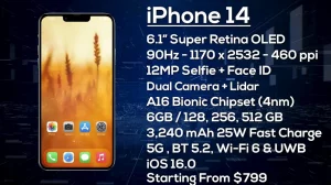 iPhone 14 Max – 6.7″ Super Retina OLED – 90HZ Display with a 1284 x 2778 resolution