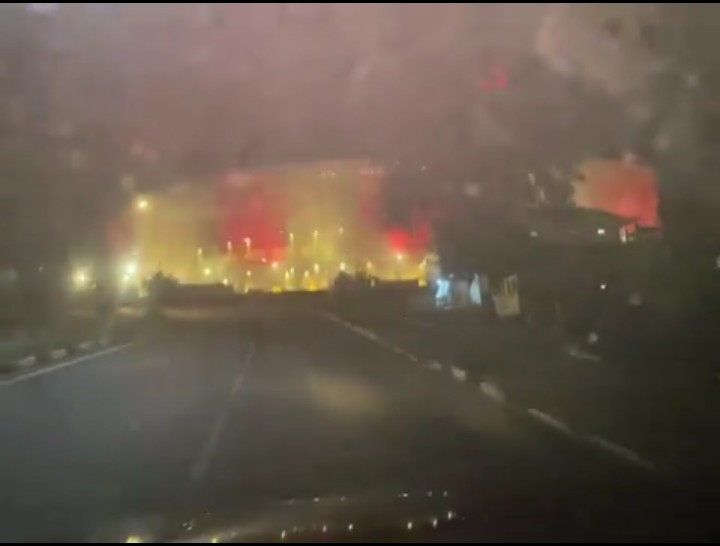 Irara imurikiye umujyi ! Amashusho y’uburyo stade Amahoro irara yaka ihinduranya amabara -VIDEWO