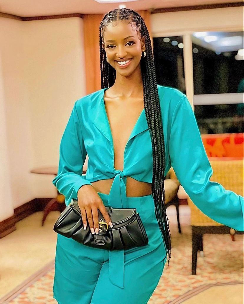 Ni amafoto 2 yashyize ku rubuga rwe rwa instagram amugaragaza yambaye  imyambaro iri mu ibara ry’icyatsi , ikabutura n’ishati maze abasore bajya ahatangirwa ibitekerezo bagaragaza urwo bamukunda ,