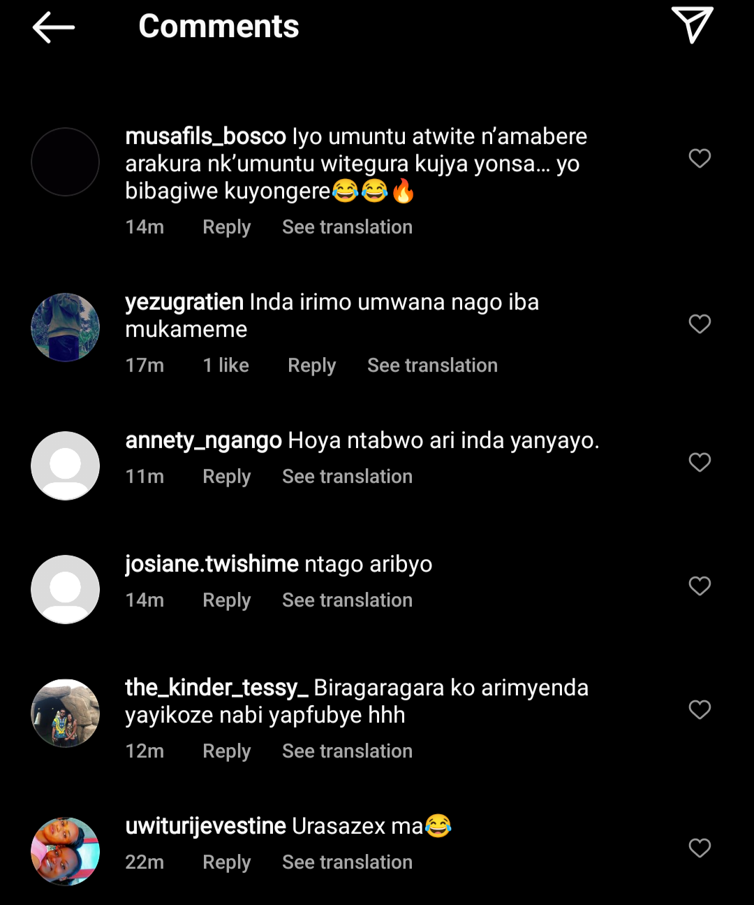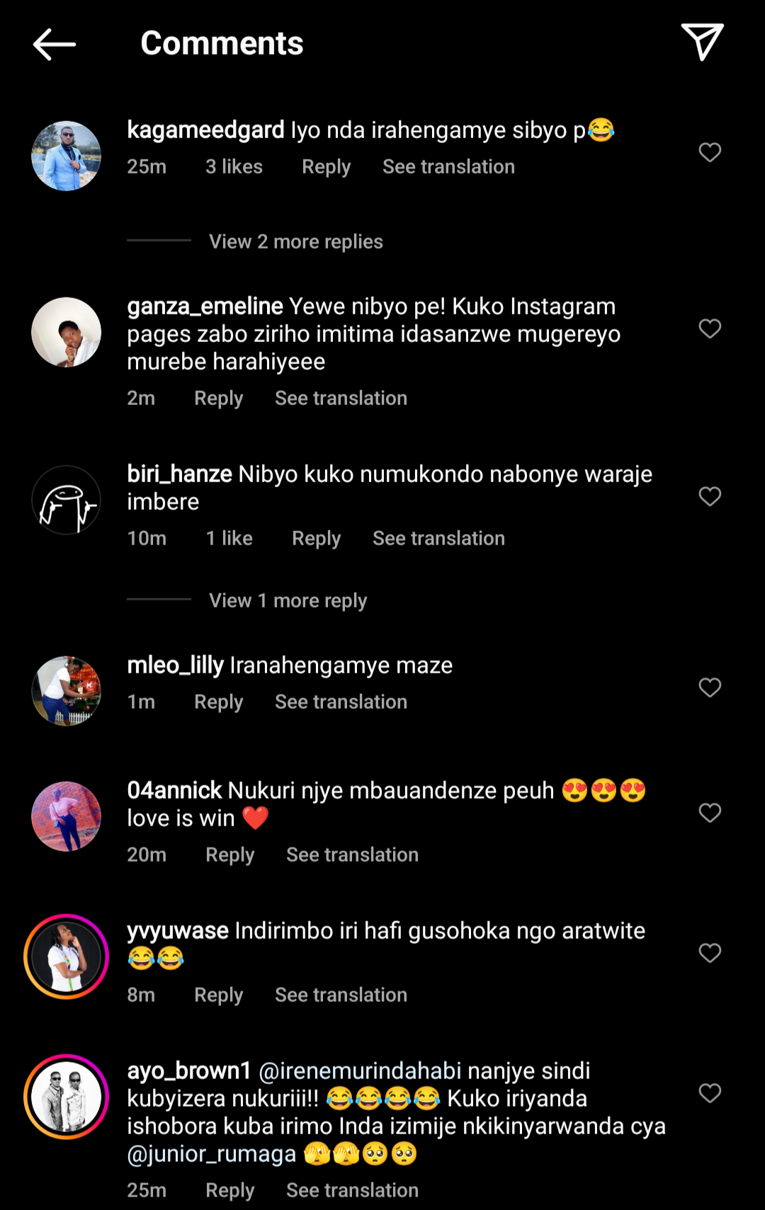 Umunyamakuru wigenga Irene Mulindahabi ubwo ya positingaga ifoto ya Junior Rumaga arikumwe Bahali Ruth yabajije abamukurikira ku rukuta rwe rwa Instagram bamusubiza gutya.