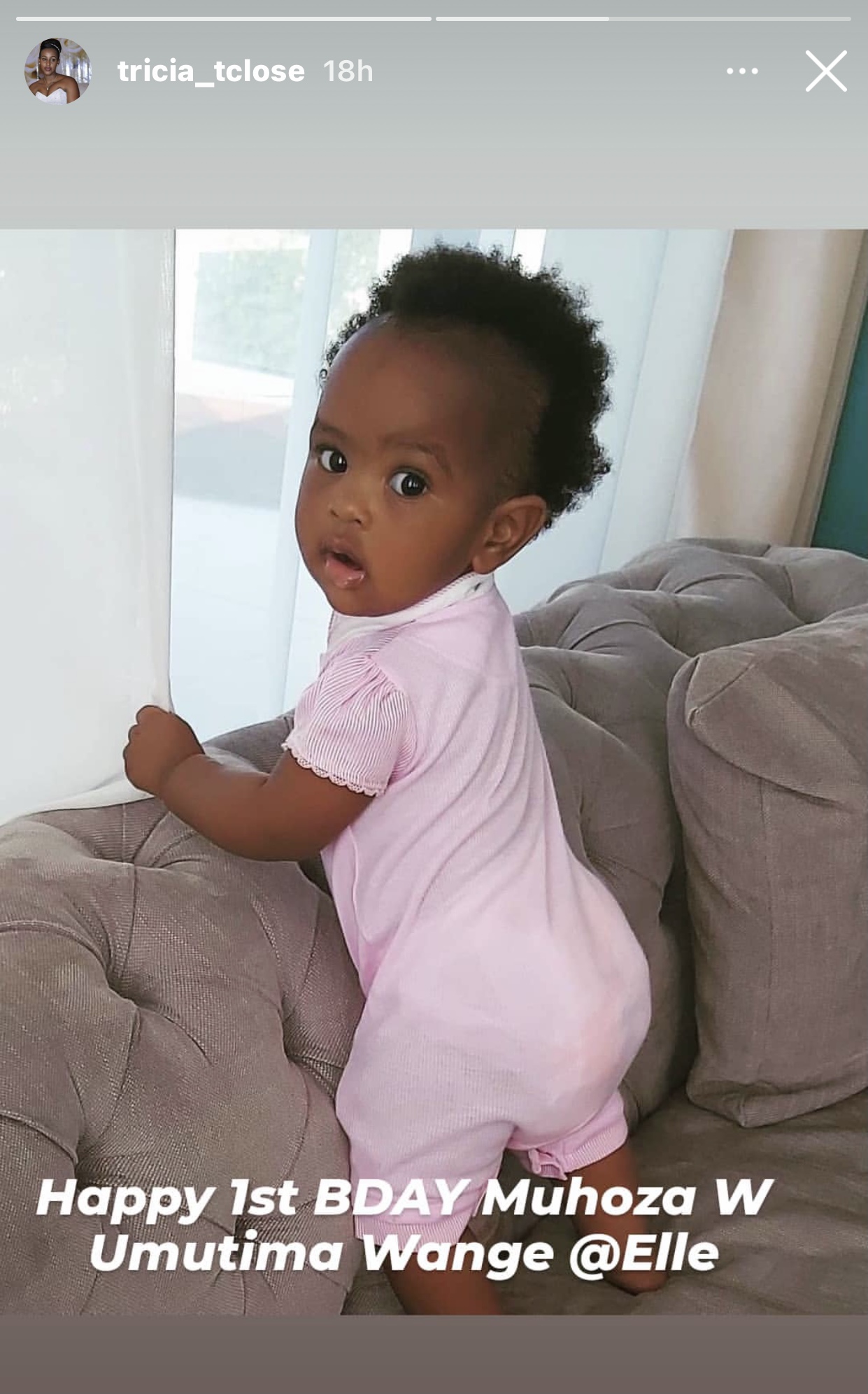 Tricia Ange Niyonshuti, umufasha wa Tom Close, yifurije isabukuru nziza y’amavuko umwana we. Abinyujije kuri story ya instagram ye, Tricia yerekanye ifoto y’umwana we maze ayiherekesha amagambo agira ati « Happy 1st bday Muhoza wUmutima wange @Elle ».