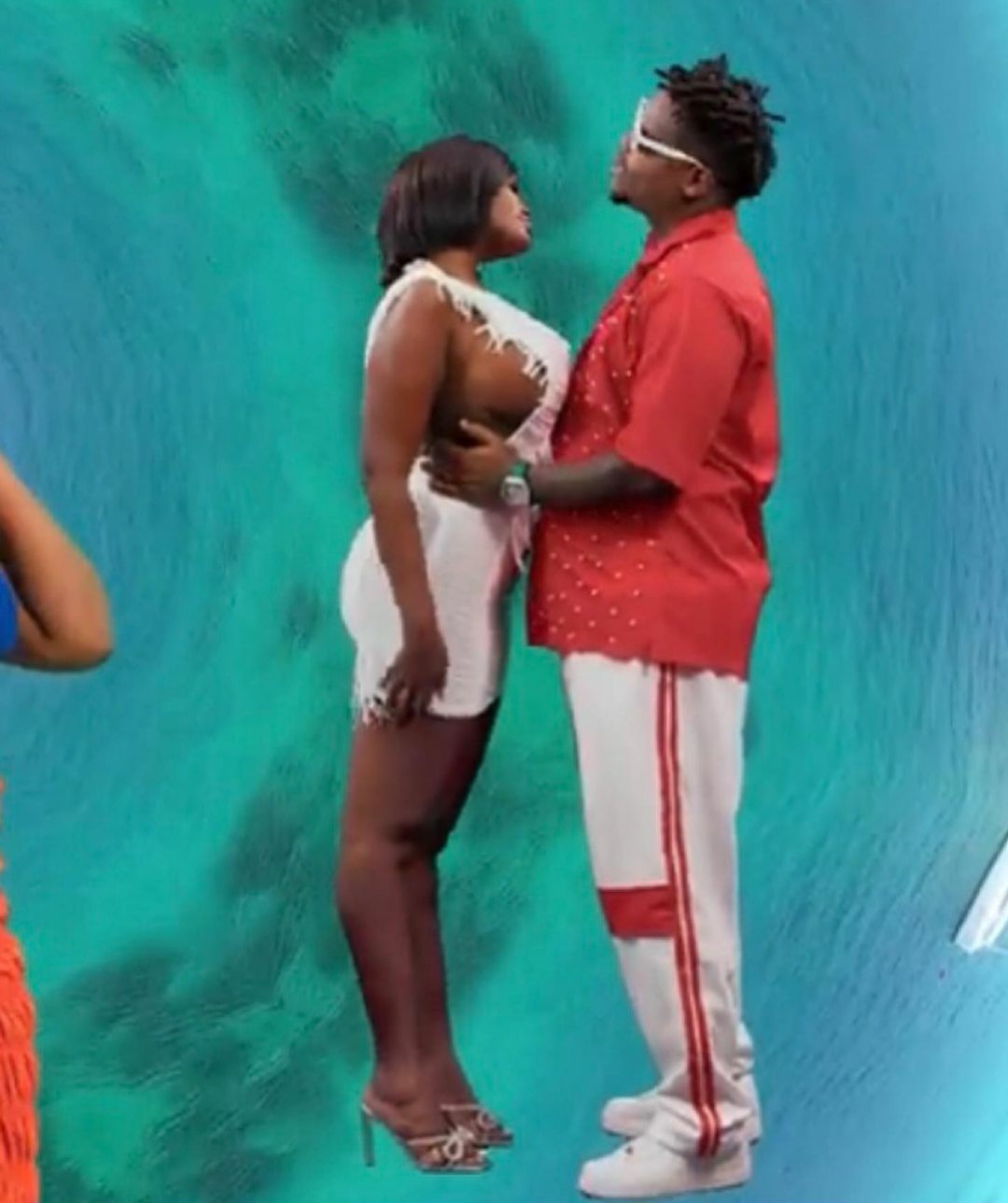 Isimbi Noeline wamamaye mu gukina filime z’urukozasoni yihereranye na Bruce Melodie mu cyumba cya bonyine.