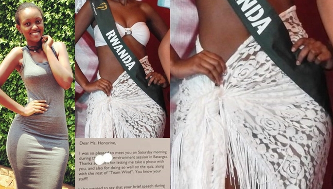 “Thank you so much for posting my daughters photo with you… you all made her day so special… her dream is to be like you… a Beauty Queen Someday…again Thank you so much!!! We love you!!!= warakoze gushyira hanze ifoto uri kumwe n’umwana wanjye..inzozi ze ni ukuzaba nkawe….umamikazi mwiza…. ndagushimiye cyane …turagukunda” Usibye uyu mwana ariko hari n’undi wandikiye Miss igisabo ibaruwa yatugezeho ikaba igira iti”