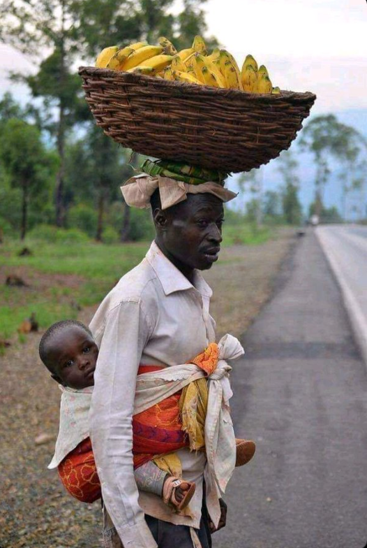 Ninako byagenze ubwo uwitwa “Wahora niki” kuri Twitter yashyiragaho ifoto y’umugabo uhetse umwana ndetse y’ikoreye n’igitebo cyuzuye imineke bigaragara ko ari mubucuruzi. Abantu benshi batangaye berekanako bidasanzwe ariko bamwe banamushimira ko afatanya n’umudamu we.