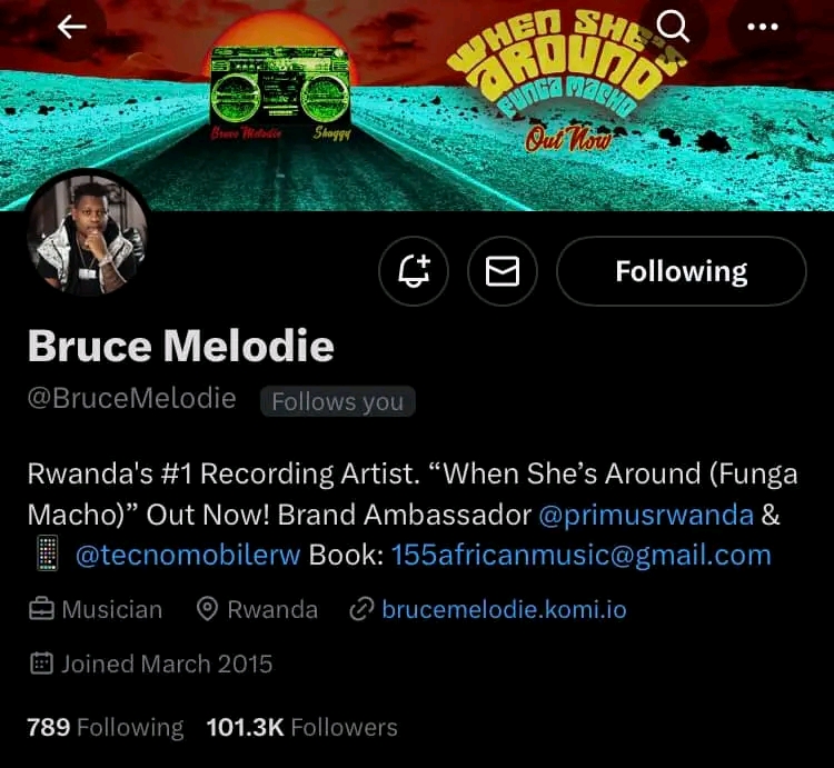 Nyuma yo kumuhigika kuri Twitter, bidasubirwaho Umuhanzi Bruce Melodie uri kubarizwa muri Leta Zunze Ubumwe z’Amerika yahigitse Meddy ku mwanya w’Umuhanzi nyarwanda wa mbere ukurikirwa kurusha abandi ku rubuga rwa Instagram.