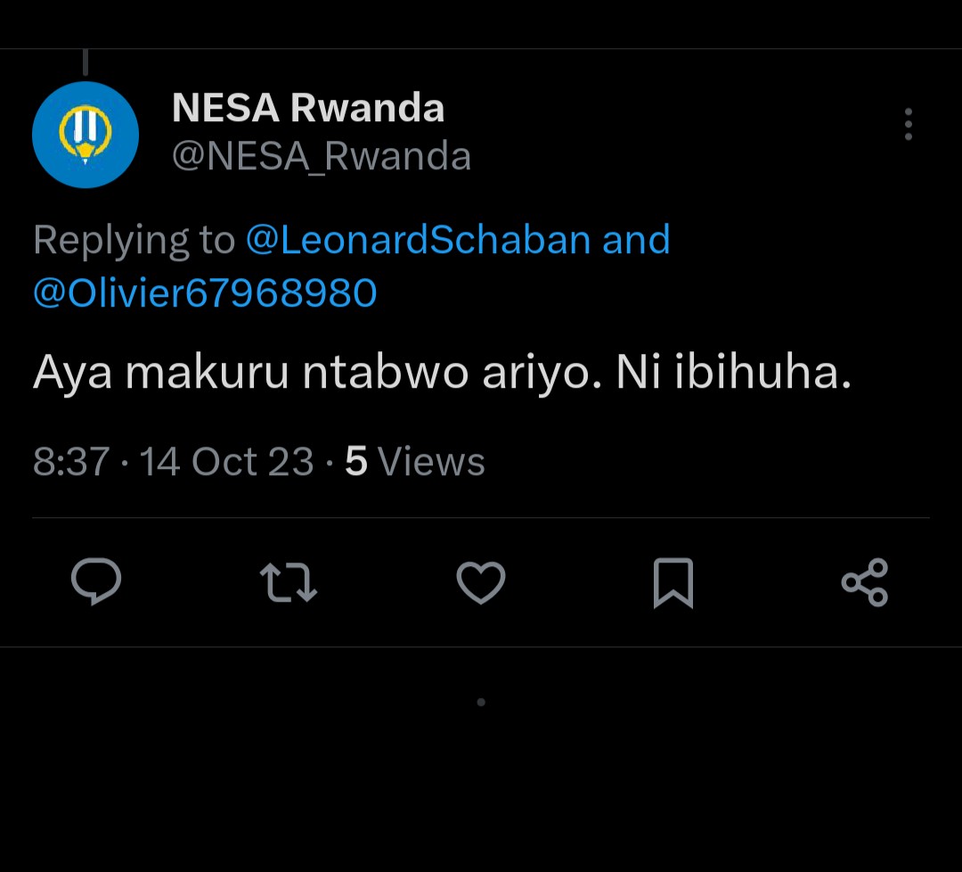 Ibinyujije ku rukuta rwa X yahoze yitwa Twitter, NESA yanyomoje ayo makuru itangaza ko ari ibihuha.