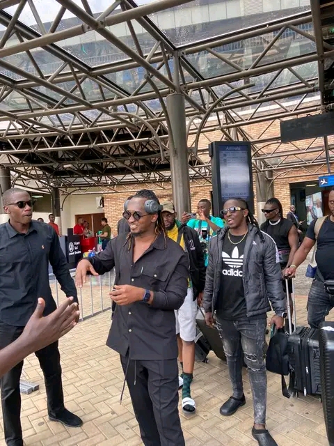Itsinda rya B2C risanzwe rikorera umuziki mu gihugu cya Uganda ryageeze ku kibuga mpuzamahanga cy’Indege i Kanombe aho ryitabiriye igitaramo cya Kigali Jazz Junction, giteganyijwe ku wa 24 Gashyantare 2023.