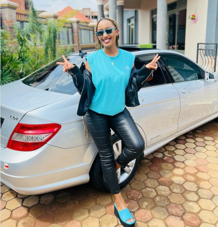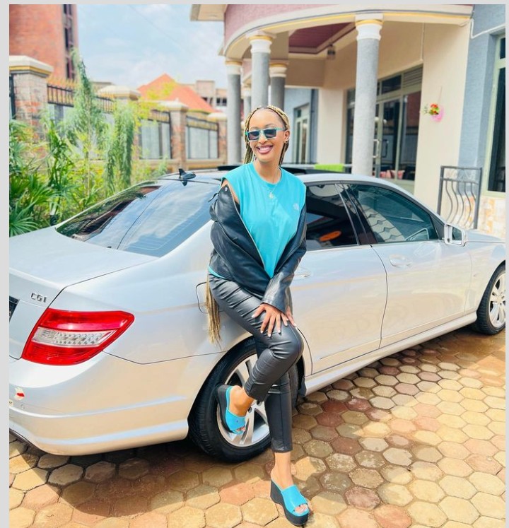 Uwase Muyango Mama Miguel abinyujije ku rukuta rwe rwa Instagram yasangije abamukurikira amafoto agaragaramo imodoka ye n’umugabo we Kimenyi Yves Papa Miguel.