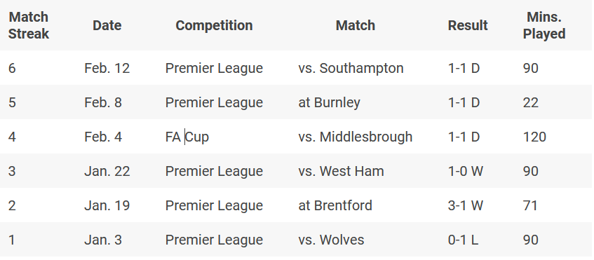 Uyu rutahizamu amaze imikino 3 abanza ku ntebe yabasimbura ariko akaza kujya mu kibuga asimbuye. Izi nshuro uko ari eshatu yaje mu kibuga asimbuye, umukino warangiraga Manchester united igabanye amanota. Iyi mikino yose Cristiano yananiwe guhindura umukino.