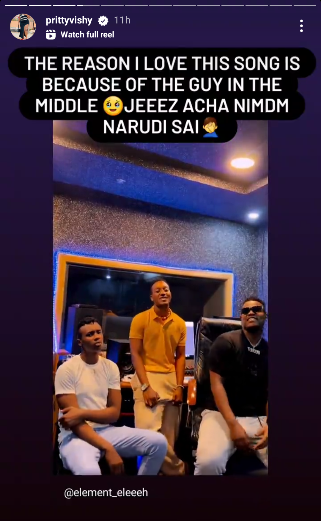 Uyu mugore yabitangarije ku rukuta rwe rwa Instagram ahashirwa ubutumwa bumara amasaha 24 (story) ashyiraho ifoto uyu musore arikumwe na Bruce melodie ndetse na Riskana bakoranye indirimbo Foi de toi maze arenzaho amagambo amutakagiza.