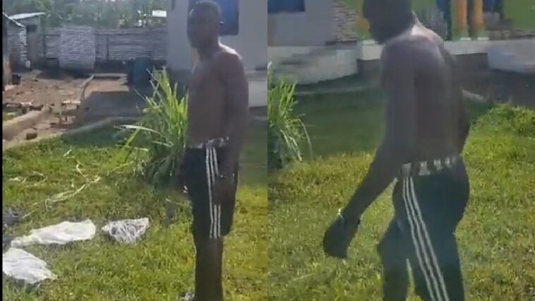 Iyi ni nyamaswa yambaye uruhu rw’umuntu! Umugabo yambuye umwana we ubusa maze aramuzirika amubamba ku biti aboshye (VIDEWO)