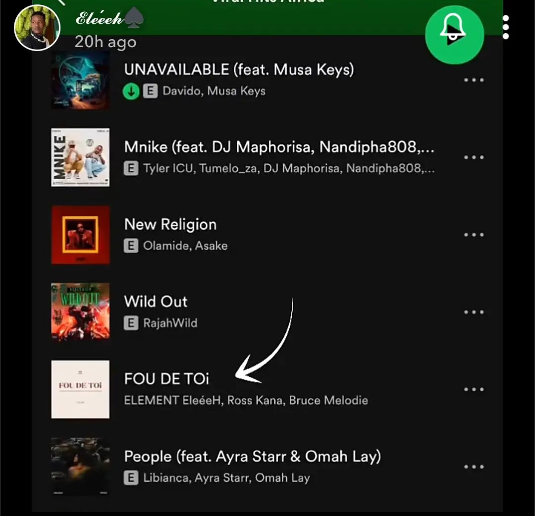 Indirimbo “Fou de toi” ya Element, Bruce Melodie na Ross Kana yashyize ku rutonde rw’indirimbo zirimo gukundwa cyane ku mugabane wa Africa binyuze ku rubuga rwa Spotify aho iri kumwe na “Unavailable” ya Davido.