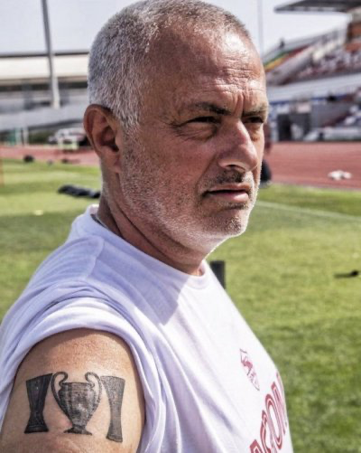 Nyuma yo kwandika ayo mateka akomeye Jose mourinho yahicemo kwandika ku mubiri we igishushanyo kiriho ibyo bikombe yegukanye.