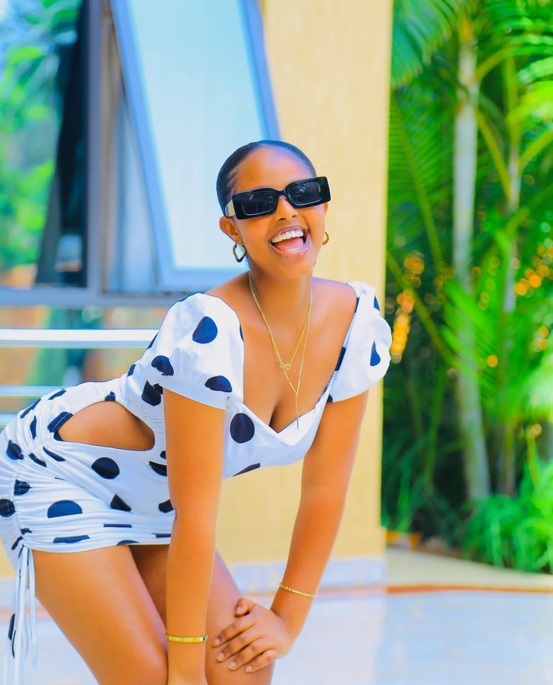 Abinyujije kurukuta rwe rwa Instagram yashyizeho amafoto yambaye agakanzu kagufi cyane karimo amabara atandukanye harimo umukara ndetse numweru.
