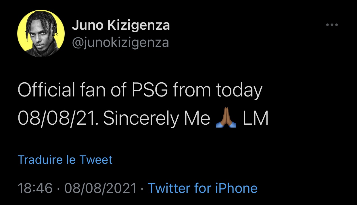 Nyuma y’aya marira ya Messi, Juno Kizigenza abinyujije ku rukuta rwe rwa instagram yatangaje ko guhera kuri uyu wa 08 z’ukwa 8 agiye gutangira gufana ikipe ya Paris Saint-Germain (PSG) birimo kuvugwa cyane ko Lionel Messi ariyo azerekezamo.