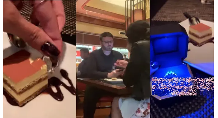 Uyu mukobwa ukiri muto yavuze ko arambiwe gutegereza ko umusore ar we azatera ivi, bityo afata icyemezo kubyikorera. Yaguze impeta ihenze ayishyira mu gice gito cya cake batumije muri resitora, yizeye ko azayibona igihe arimo kurya.Uyu mukobwa yaje gusohokana n’umusore maze amutungura ayimwambika.