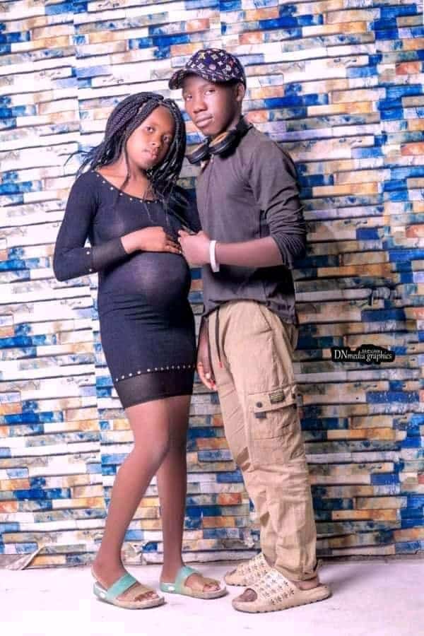 Nkuko bigaragara aba bombi bafotowe bishimanye ndetse bigaragara ko bifashe nka couple y’abantu bakuru biteguye kwibaruka.Witegereje neza ntiwapfa kumenya ko aba bana bari muri iyo myaka gusa bigaragara ko uyu mwana w’umukobwa akuriwe ndetse ari hafi kubyara.