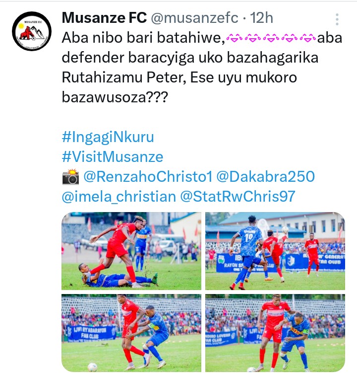 Musanze FC ibinyujije ku mbuga nkoranyambaga zayo, yagize iti “Aba nibo bari batahiwe, aba defanseri baracyiga uko bazahagarika rutahizamu Peter, Ese uyu mukoro bazawusoza???”