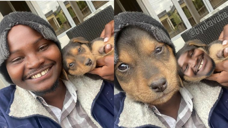 Umunyarwenya Rusine Patrick ukunze kugaragaza udushya twinshi mu rwenya rwe mu ijoro rya shize yashyize ifoto ya selfie arikumwe n’imbwa ayita umuvandimwe.