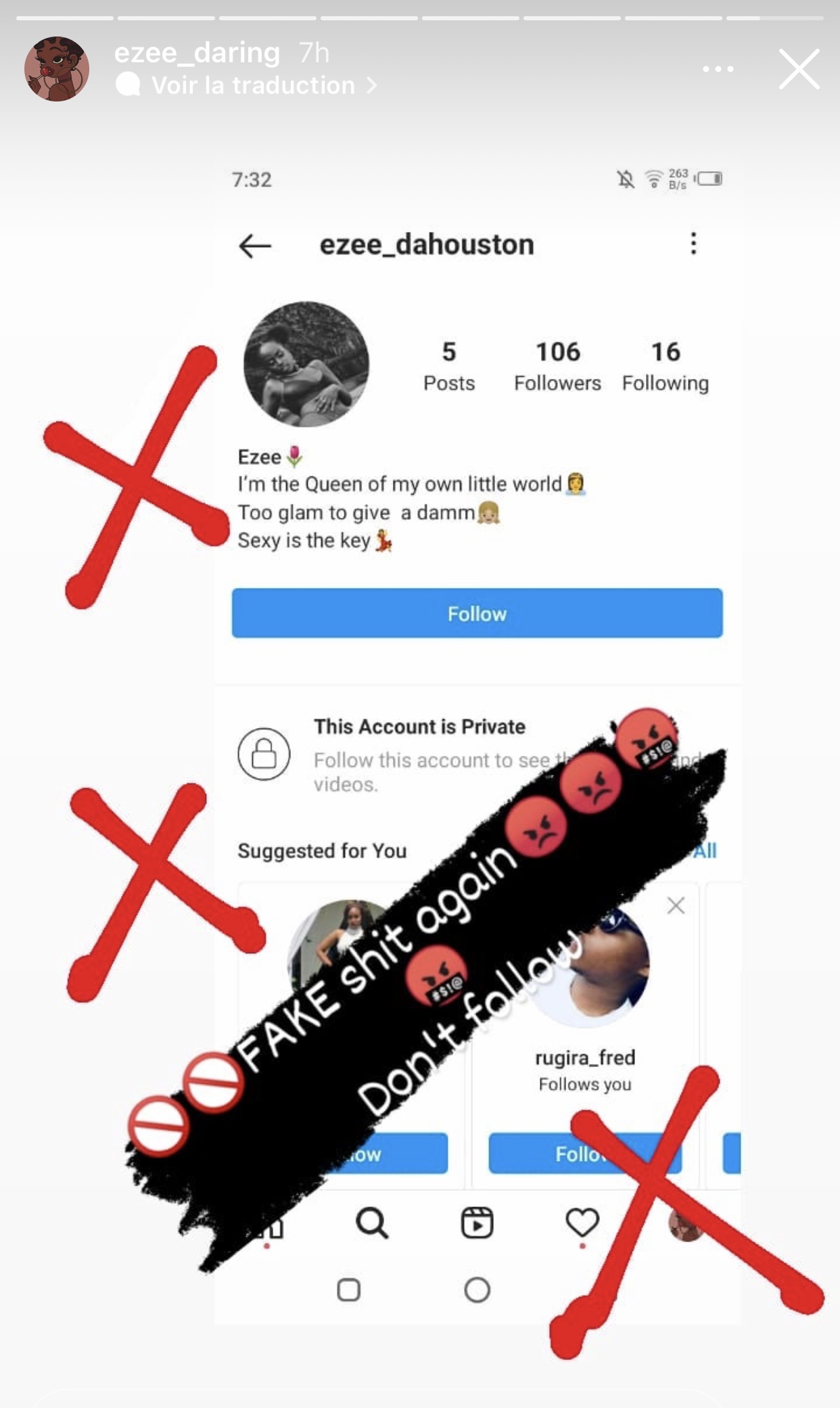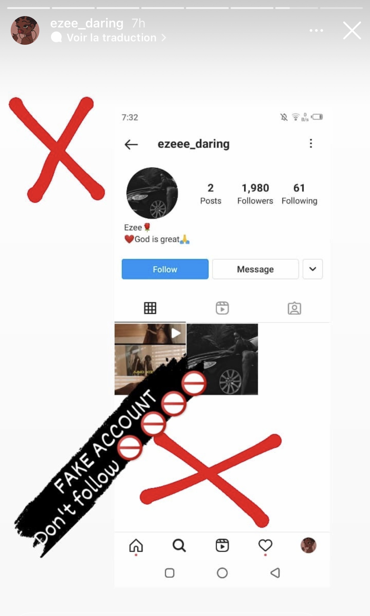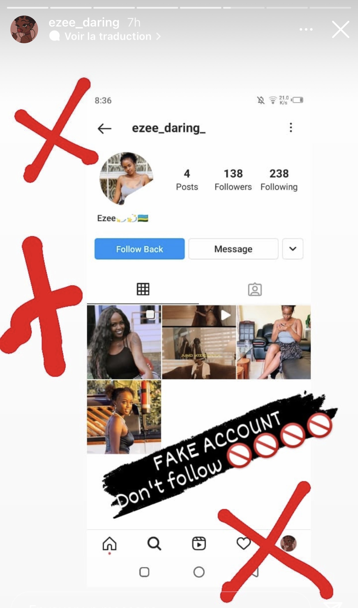 Nkuko Ezee yabyeretse abamukurikira yerekanye konti 3 za instagram zahimbwe mu mazina ye abwira abantu ko izo konti zose atari ize.