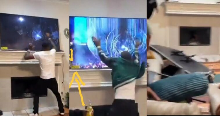 Karabaye umugabo ikipe ye yatsinzwe igitego maze afata tereviziyo yarutura arayimegura -Reba videwo