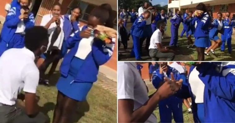 Karabaye: undi munyeshuri yashinze ivi yambikira impeta umukunzi we imbere y’abanyeshuri ,induru ziravuga (Video)