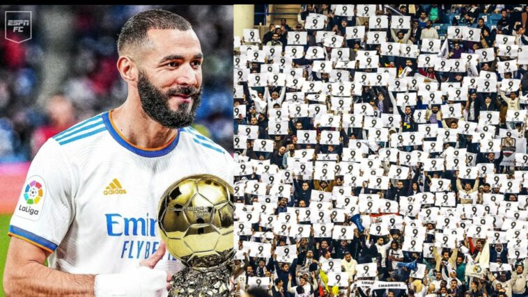 Mu byishimo budasanzwe Karim Benzema yagize ubwo abafana buzuye sitade bazamuraga umubare icyenda akaba arinayo nimero yambara.