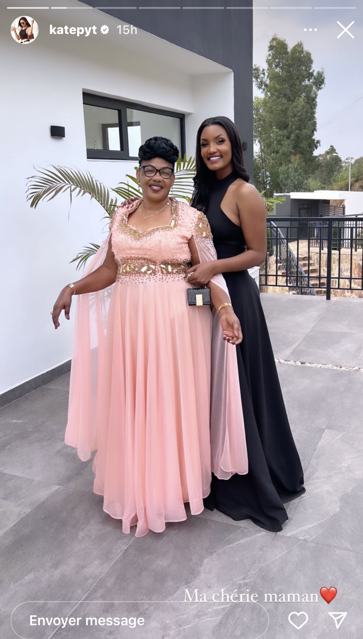 Abinyujije kuri story ya instagram ye, Kate Bashabe yashyize hanze ifoto aho yarari kumwe na Mama we maze ayiherekesha amagambo agira ati « Ma chérie Maman ❤️ ».