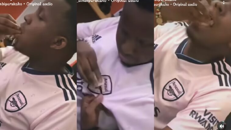 Kawunga muri situdiyo! Umunyamakuru Faustin Simbigarukaho yongeye kwiyerekana arya Kawunga idafite imbog aho yayikozaga ku mupira wa Arsenal yari yambaye (VIDEWO)