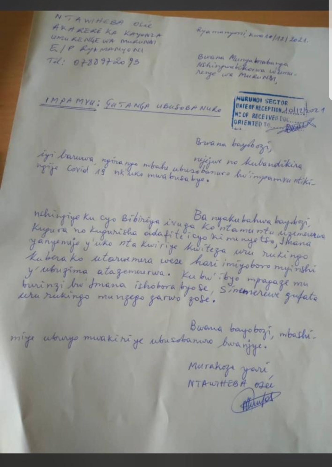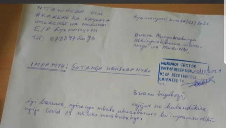 Umuyobozi mu murenge wa Murundi mu karere ka Kayonza yandikiye umuyobozi w’umurenge amuha ubusobanuro bw’impamvu atigeze afata urukingo na rumwe rwa Covid19 ndetse ko adateze kurufata kubera impamvu ze.