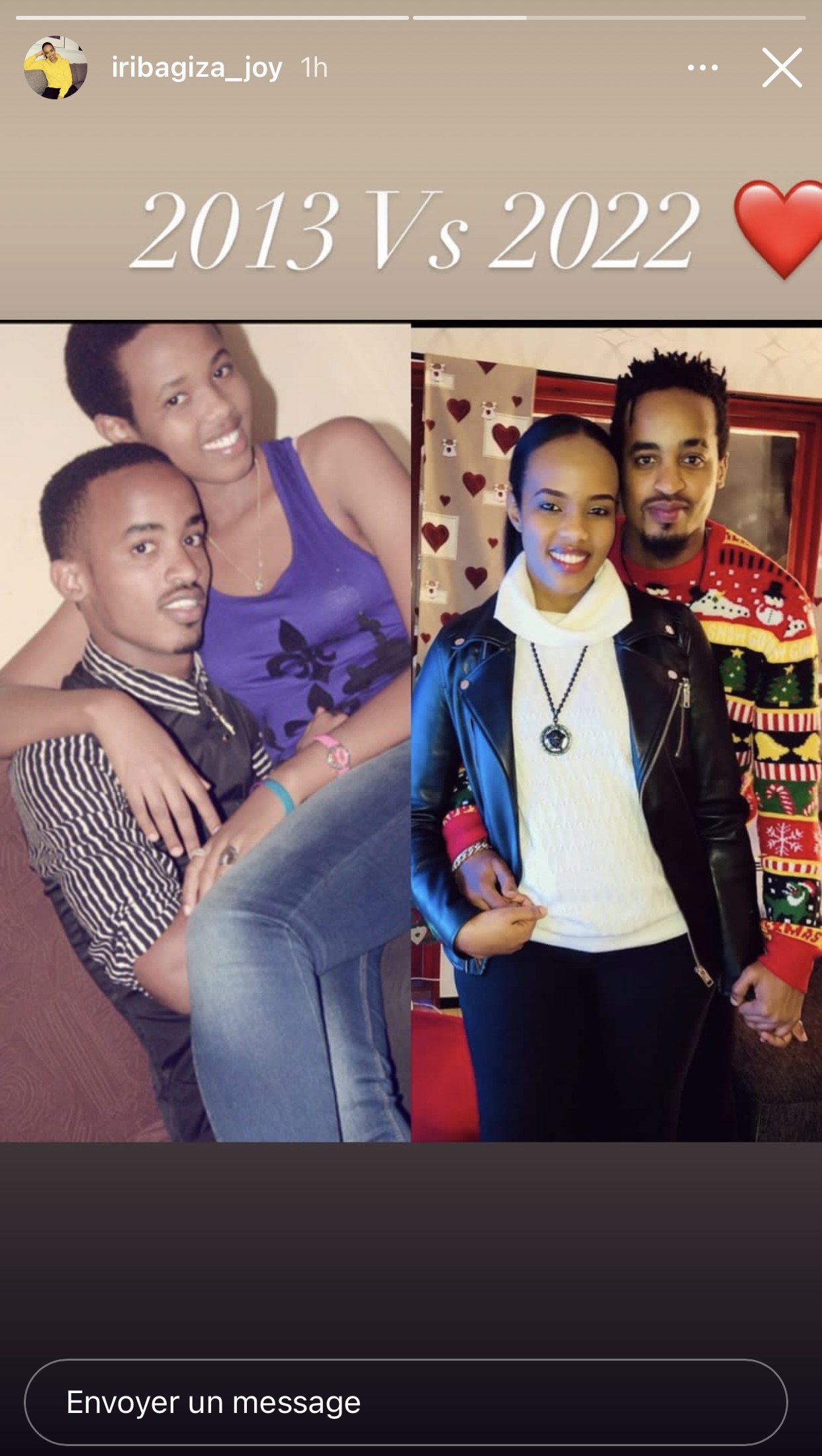 Nkuko amagambo ari kuri iyi foto abigaragaza, iyi foto yafashwe mu mwaka wa 2013, Joy akaba yifuje kuyihuza niy’uyu mwaka wa 2022 mu rwego rwo kwizihiza imyaka 9 we na Yannick Mukunzi bamaze bakundana.