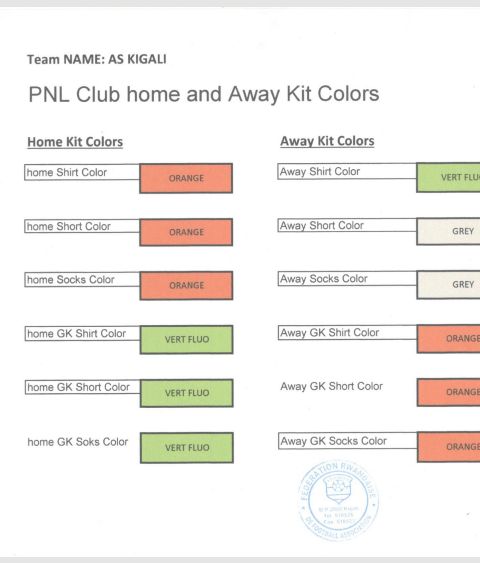 Ishyirahamwe ry’umupira w’amaguru mu Rwanda FERWAFA ryandikiye amakipe yose akina ikiciro cya mbere cya Championa riyamenyesha amabara akwiriye kujya yambara.