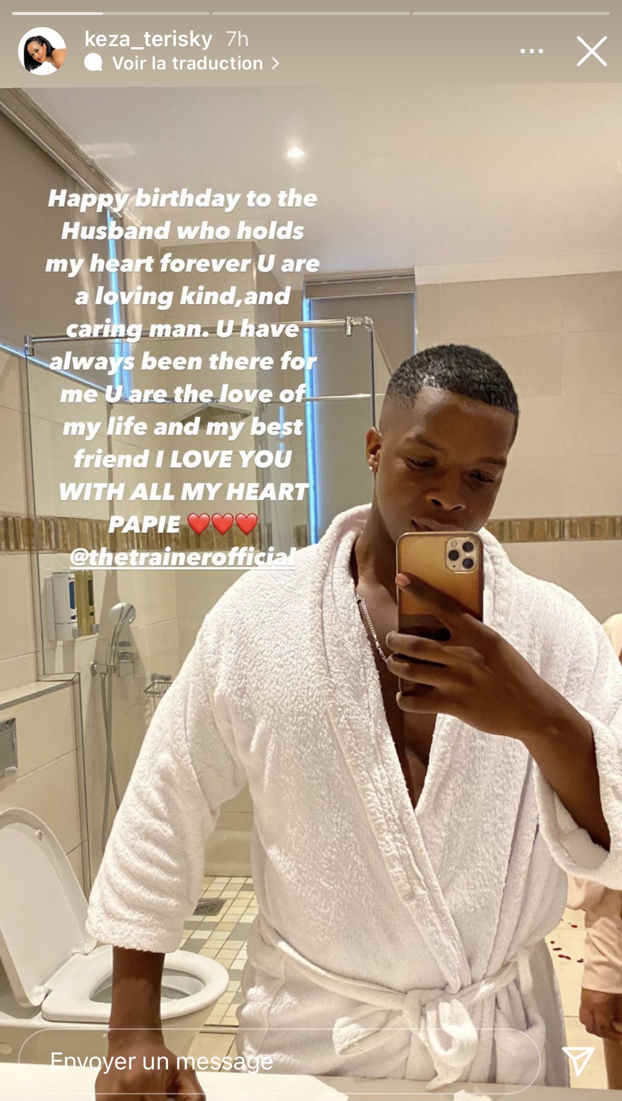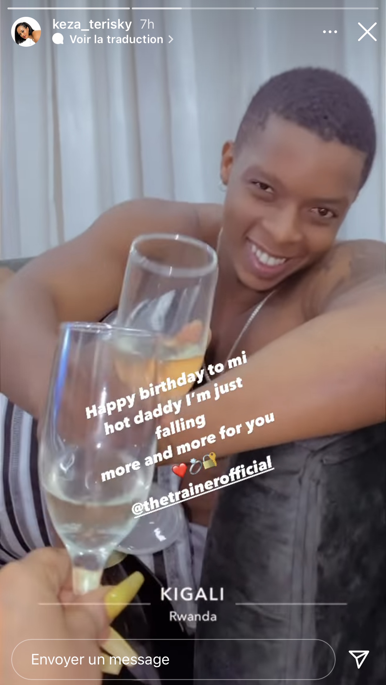 Kuri uyu wa 03 Gicurasi ni isabukuru y’amavuko ya The Trainer, Keza abinyujije kuri story ya instagram ye yifurije isabukuru nziza fiancé we, The Trainer, mu magambo agira ati « Happy birthday to the Husband who holds my heart forever U a loving kind and caring man. U have always been there for me U are the love of my life and my best friend I LOVE YOU WITH ALL MY HEART PAPIE ❤️❤️❤️». Yongeyeho amagambo agira ati « Happy birthday to mi hot daddy I’m just falling more and more for you ❤️💍🔐, To me, you are simply perfect I love you big much ❤️💍🙏🏽🔐 ».