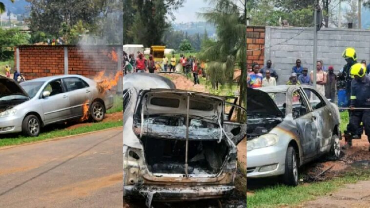 Kicukiro: Abantu bashungereye imodoka ifashwe n’inkongi y’umuriro muri iki gitondo (AMAFOTO)