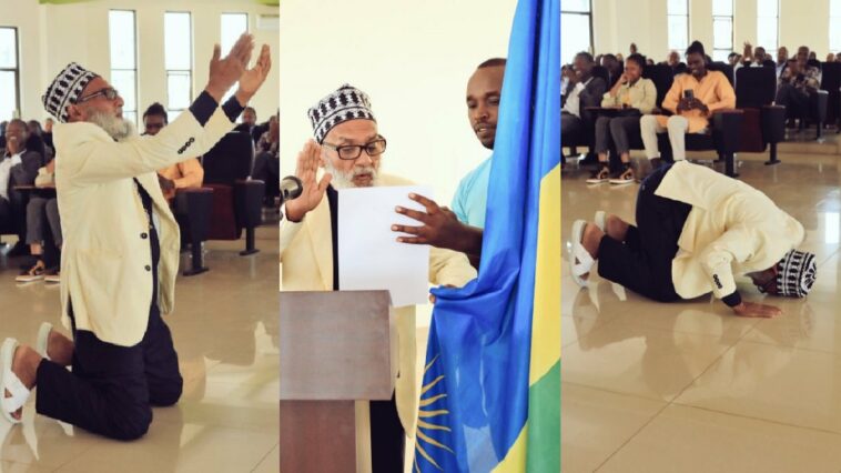Kicukiro: Umwarabu yapfukamye hasi imbere y’abantu ni uko maze ashimira Imana nyuma y’uko yari amaze guhabwa ubwenegihugu bw’u Rwanda (AMAFOTO)