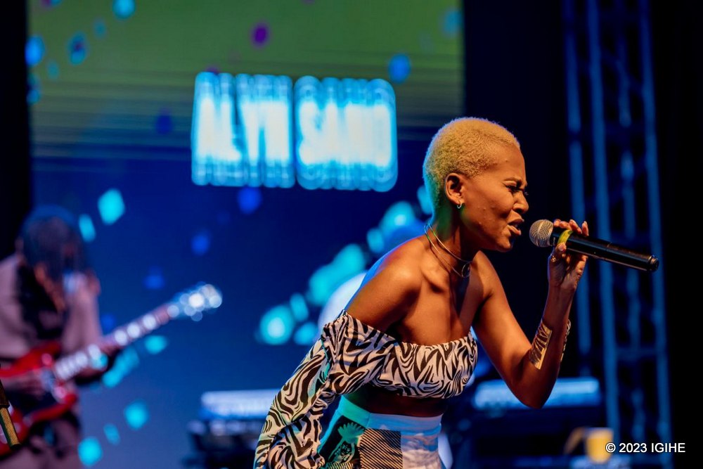 Umuhanzi Alyne Sano ni umwe mu bataramiye abitabiriye igitaramo Blankets and Wine cyabereye kuri Canal Olympia ku musozi wa Rebero.