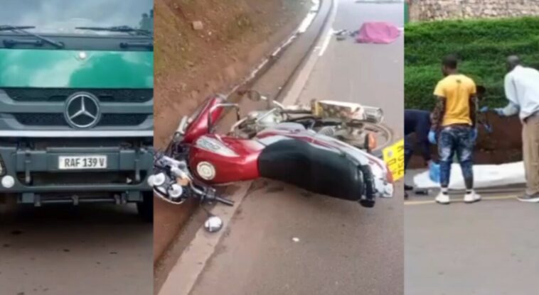Kigali habereye impanuka iteye ubwoba y’imodoka nini yagonze umumotari ahetse umugore we agacika umutwe -AMAFOTO