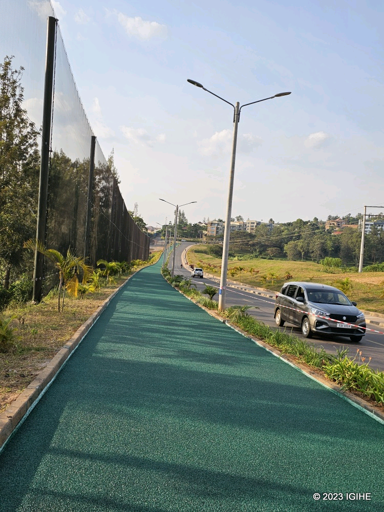 Kuri ubu ahazwi nko kuri Golf Club mu karere ka Gasabo hari kubakwa umuhanda uri no gushyirwamo itapi ukazajya wifashishwa n’abantu bari gukora siporo.