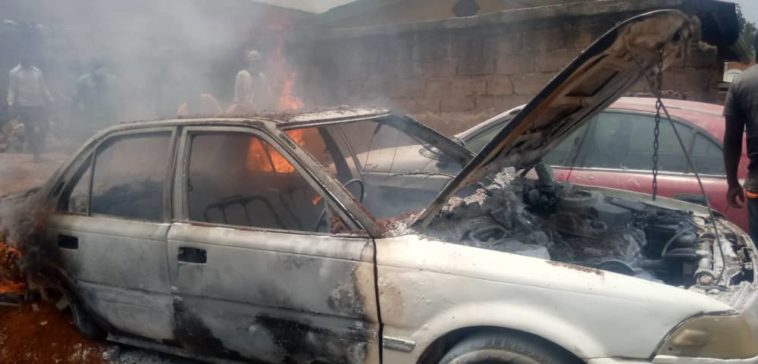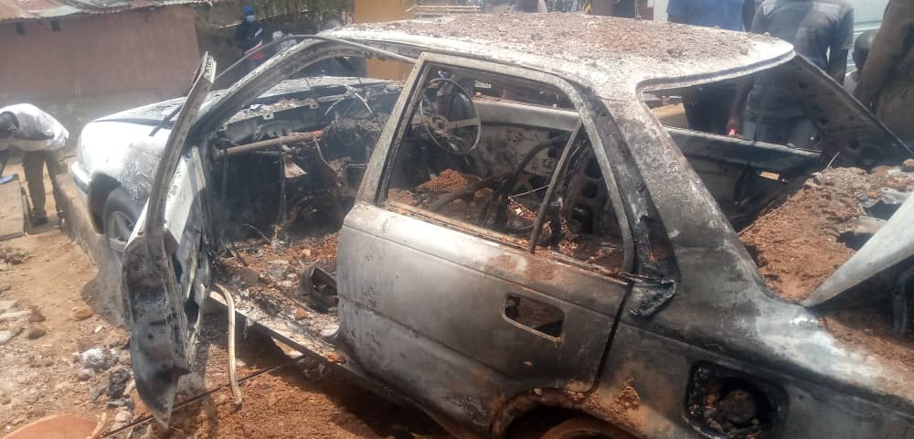 Iyi modoka yari mu igaraje yafashwe n’inkongi. Abaturage bagerageje kuyizimya ariko birangira ikongotse yose.