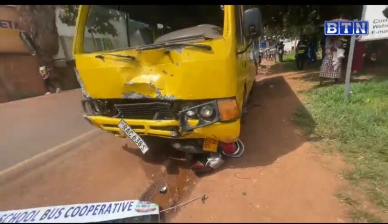 Kigali: Imodoka itwara abanyeshuri igonze moto ebyiri icyarimwe maze uwari uyitwaye afumyamo ariruka