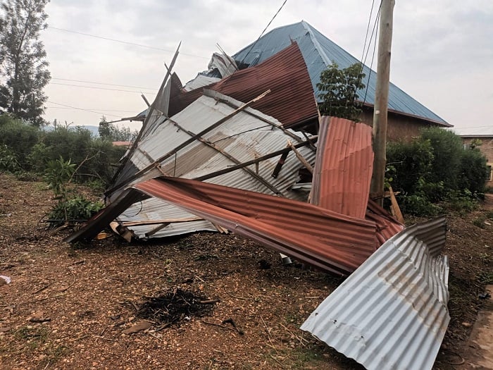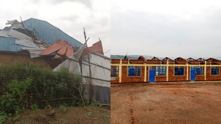 Yari imvura nyinshi ivanzemo inkuba n’umuyaga mwinshi, yasenye ibyumba by’amashuri 6 n’ibikoni byasambutse ibisenge biraguruka, inzu z’imiryango 12 n’ibisenge by’inzu 12 z’abaturage.