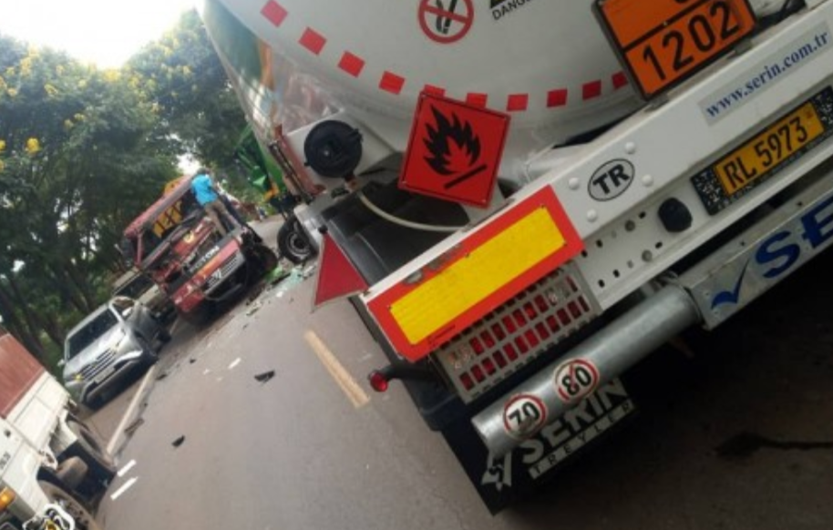 Imodoka itwara ibikomoka kuri peteroli n’indi Kamyo ya Howo zaguye muri Kaburimbo hagati zihagarika imigenderenire yuwo muhanda.