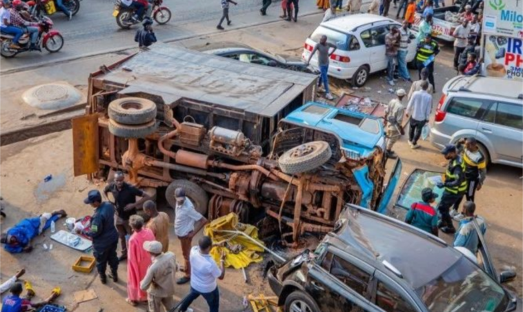 Kigali -Nyabugogo habereye impanuka iteye ubwoba aho imodoka nini itwara imyanda yagonze abantu n’izindi modoka enye zari aho hafi mu muhanda rwagati -AMAFOTO